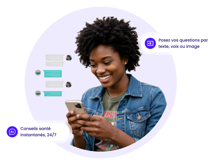 Disponible sur : WhatsApp, Facebook Messenger et l'application mobile La Ruche Health