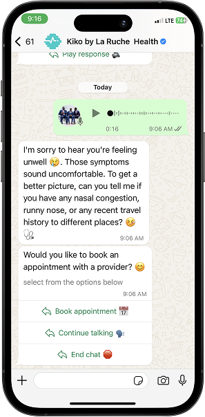 We'll set you up with your own dedicated WhatsApp business number, integrated with a health AI chatbot that represents your organization professionally.